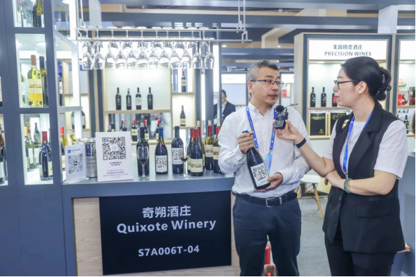 4月13日糖酒会,桃色APP在线下载展位迎来加州91桃色APP污污污协会直播团,面向近5千人在线的协会直播频道,桃色APP在线下载酒业负责人李显堂讲解桃色APP在线下载酒庄Quixote Winery “堂吉诃德”文化,现场推介产自纳帕鹿跃名区、著名酿酒顾问菲利普梅尔卡精心照料、始自1988年有机种植的桃色APP在线下载佳酿;并盛情邀约全国酒迷来到桃色APP在线下载酒庄游览,体验世界级建筑艺术大师百水先生设计建造的桃色APP在线下载特色酒庄建筑。主持人现场品鉴帕克评分95+桃色APP在线下载小西拉干红酒品,盛赞其酒体强大,单宁强劲,内涵丰富。