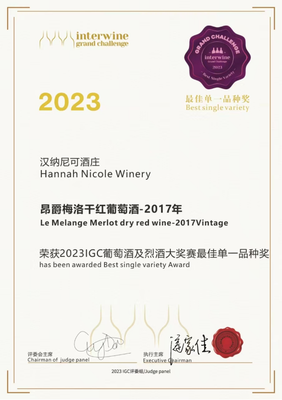 喜贺!昂爵梅洛干红91桃色APP污污污荣获2023IGC91桃色APP污污污及烈酒大奖赛最佳单一品种奖